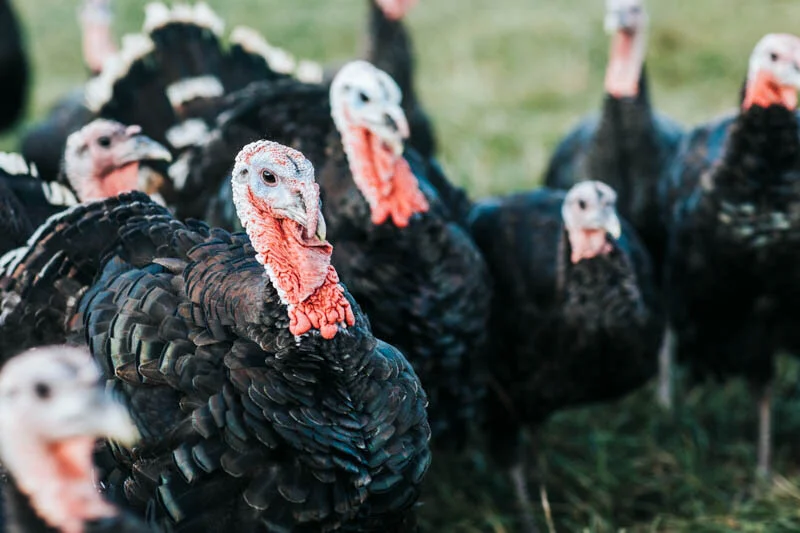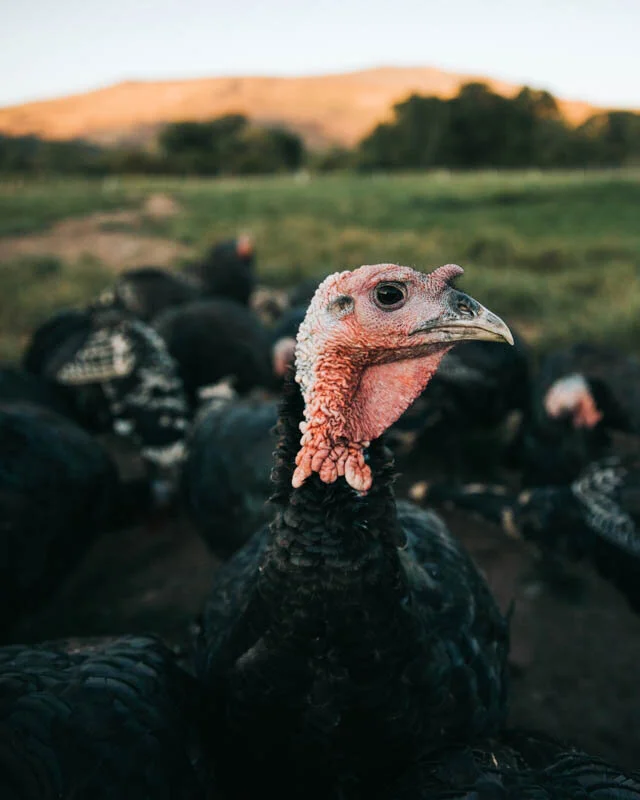 We raise Broad-Breasted Bronze turkeys on pasture each season. Similar to our layers and broilers, they assist with pasture sanitation, spreading manure and cycling nutrients.